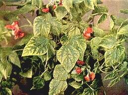 Growth dwarfed and thin; stems, petioles, pedicels and pods wilted;
