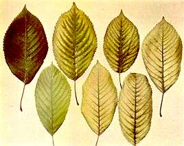 Severe chlorosis; veins, including small sublaterals prominent green;