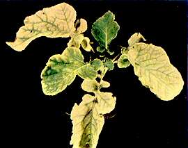 Older leaves striking chlorotic marbling (cf.