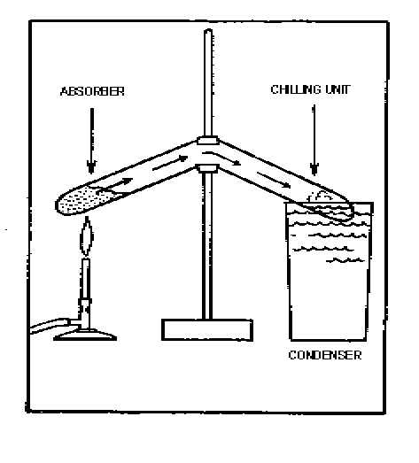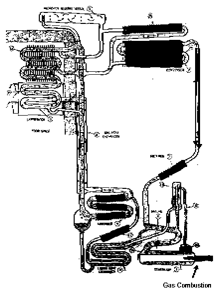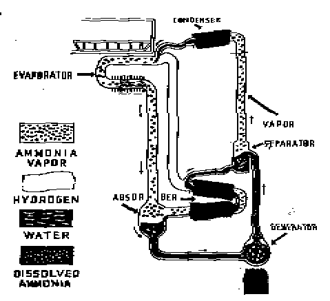 The ammonia / water absorption refrigeration system can be used with almost any source of heat which produces a temperature of 300 degrees F. or more.