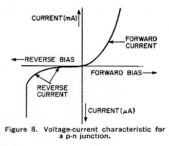 The generalized voltagecurrent characteristic for a pn junction in Fig. 8 shows both the reversebias and forwardbias regions.