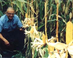 | HERB IDE, shows what happened near Independence, Iowa when the spreader ran out of FERTIMAX Fertilizer (left) and the 200-bushel corn grown where FERTIMAX was spread. The corn followed soybeans, but heavy rains leached the bean-gathered nitrogen. FERTIMAX treated soils make nitrogen--the remains of beneficial soil organisms "mineralize" to release the N from their protoplasmic remains. | |