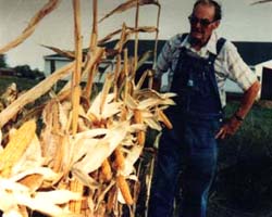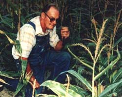 | IN 1988, OHIO was the first state to be declared a "drought disaster"--may other quickly followed. John H. DeLong, Lodi, shows (left) how the heat and lack of water destroyed NPK and lime crops and how his FERTIMAXed (Biologically Farmed) corn performed under the same conditions. | |