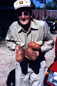 | TWO TEXANs, Mrs. Bill Stockett, Wayside, and LeRoy Miller, Canyon, proudly show what happens in gardens (or fields) when soils are "completely, scientifically remineralized and biologically reactivated" with FERTIMAX Fertilizer. | |