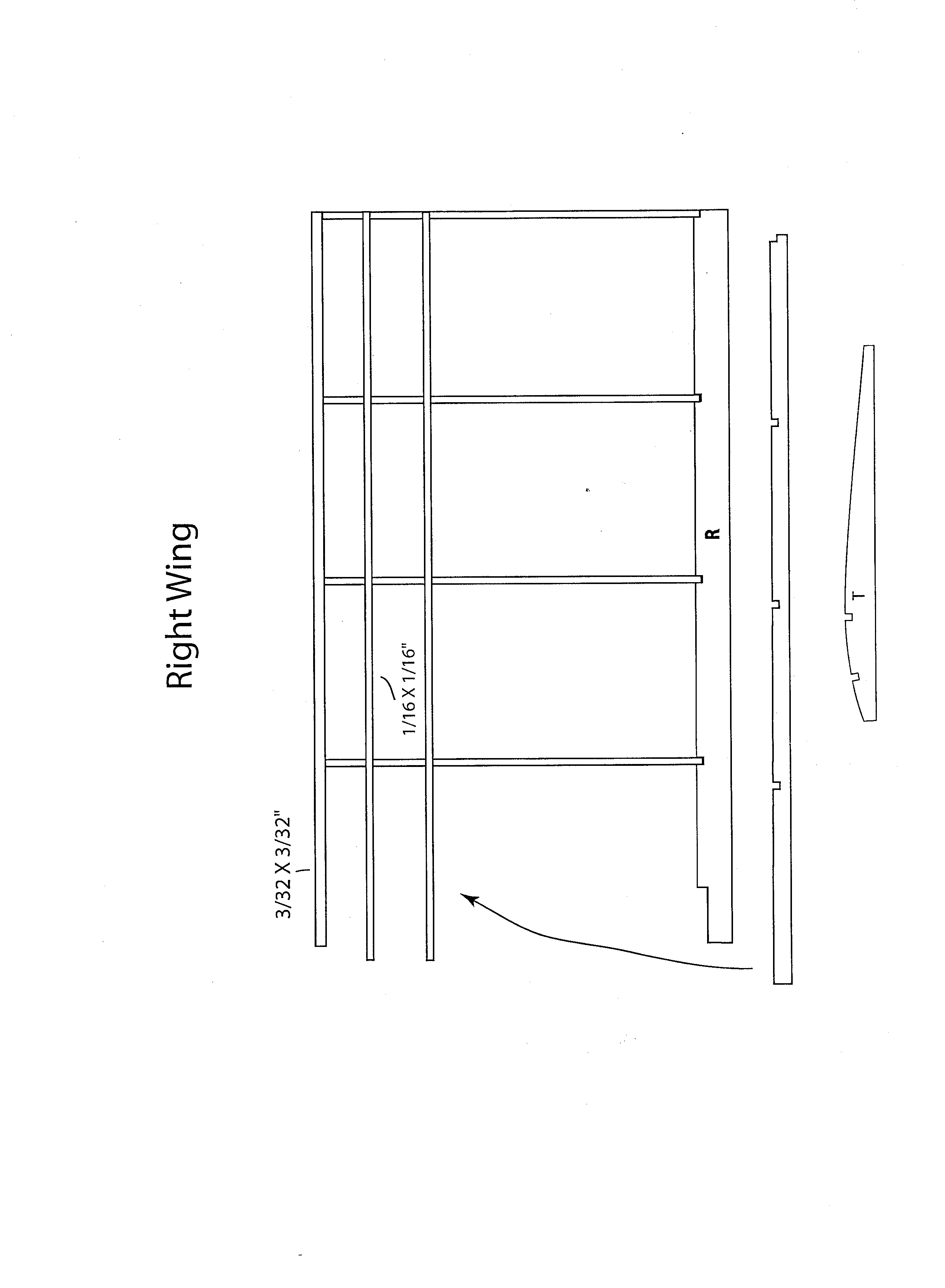 To assemble the wing, pin the 6” piece of 1/8” sq you