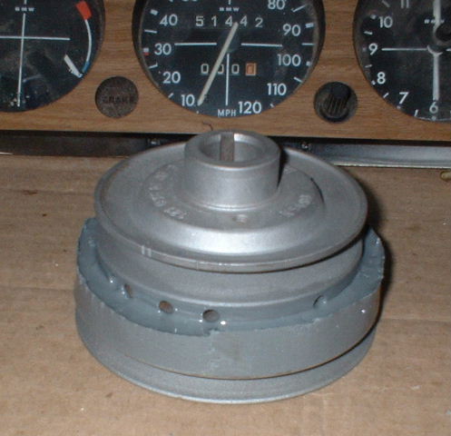 I bead blasted the 2002 front pulley to get it good and clean, then made a 'dam' from duct tape around the outside diameter of the big front-most (on the engine) groove.