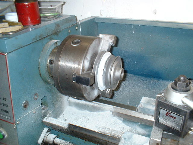 Chuck it up in your neighbor's lathe and turn it down to the EDIS toothed wheel inner diameter, centered over the middle '02 pulley groove. There's a drawing on the megasquirt.info site of the EDIS wheel dimensions somewhere. J.B. weld machines like butter, any small machine shop can do this for you if you don't know someone with a lathe. It machines so easy, I'm sure a better MacGyver than I can figure out a way to do it without the lathe.