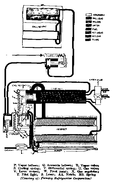 The ammonia / water absorption refrigeration system can be used with almost any source of heat which produces a temperature of 300 degrees F. or more.